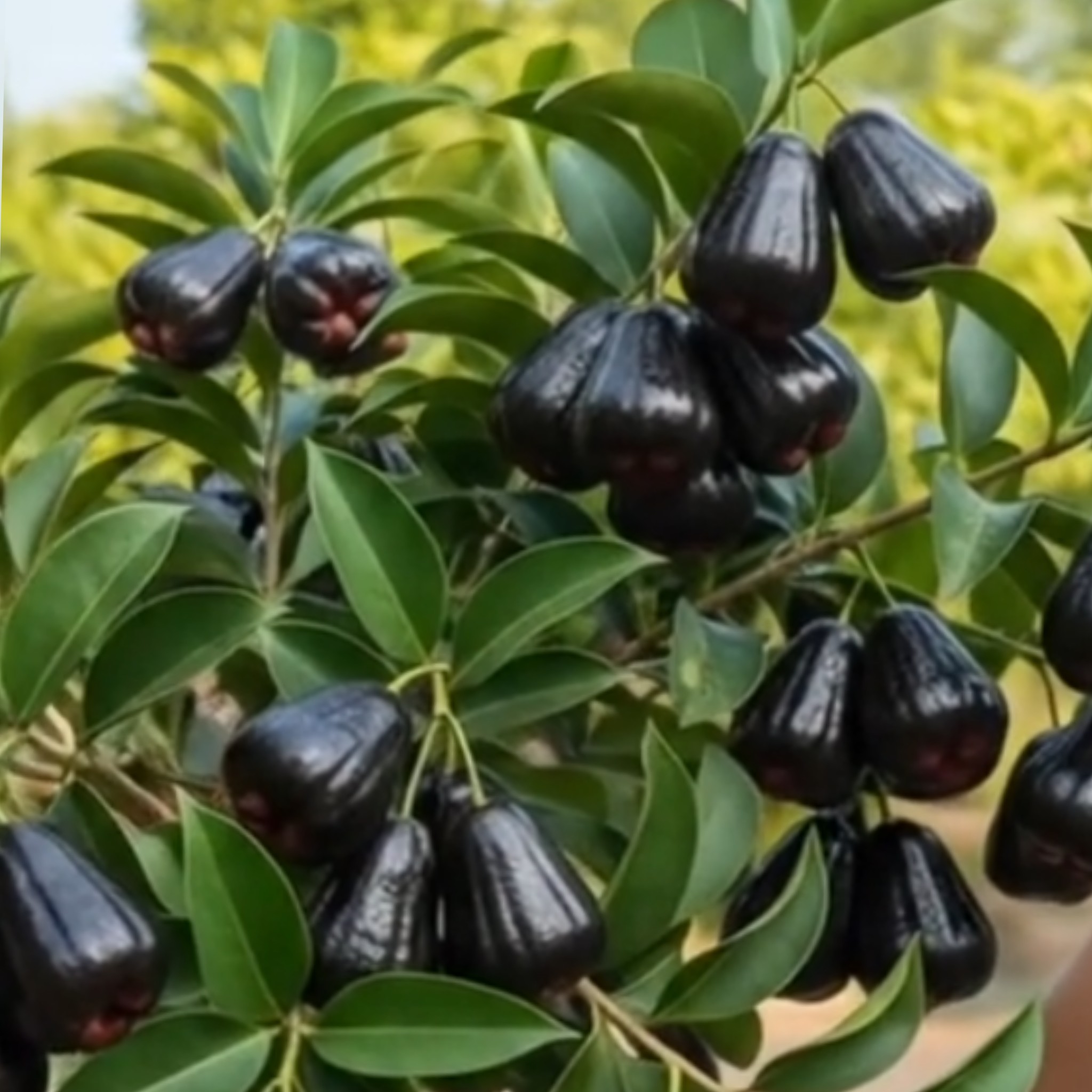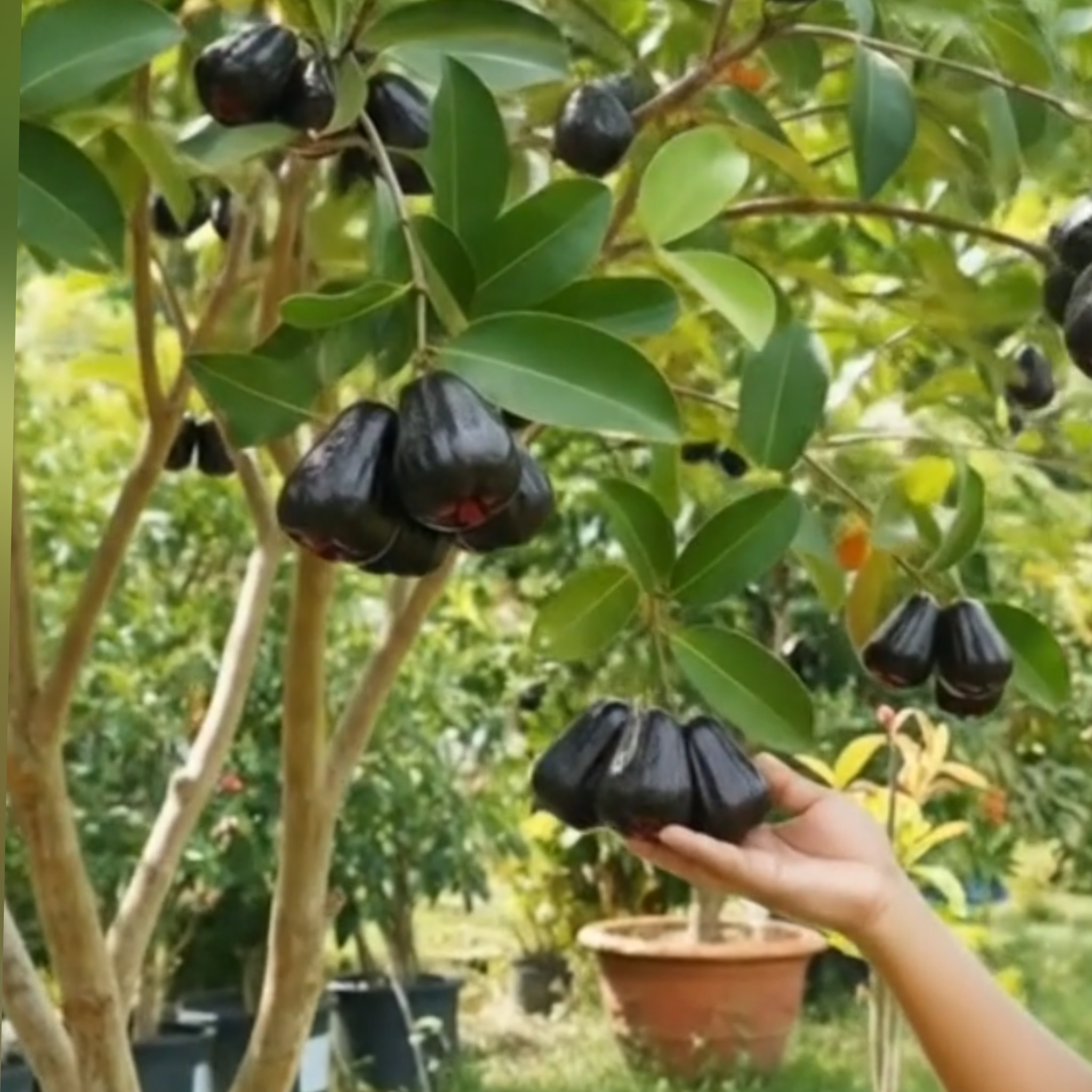 Jambu air Black Guava adalah varietas eksotis dengan kulit kehitaman berkilau dan daging merah muda segar. Buah ini kaya antioksidan, vitamin C, dan serat alami yang baik untuk daya tahan tubuh. Tak hanya indah dipandang, tanaman ini bisa tumbuh subur di pot — cocok bagi penghuni kota yang mencintai kesegaran tropis di ruang terbatas.